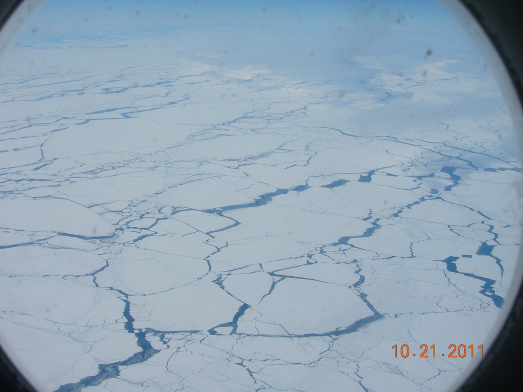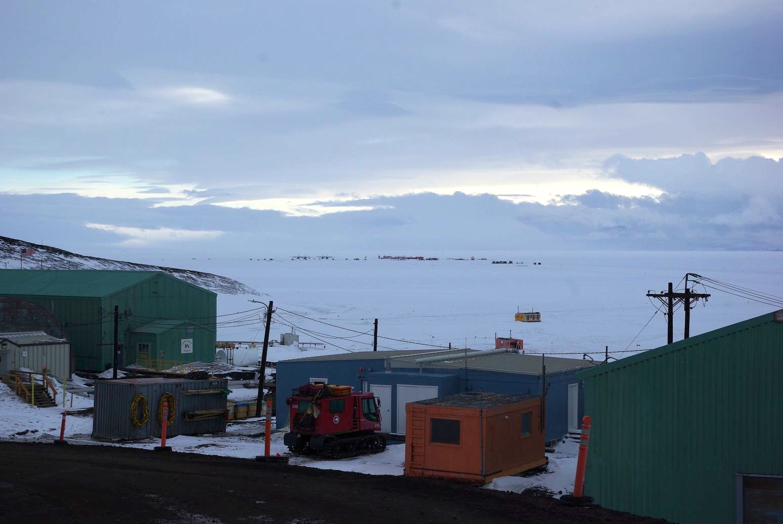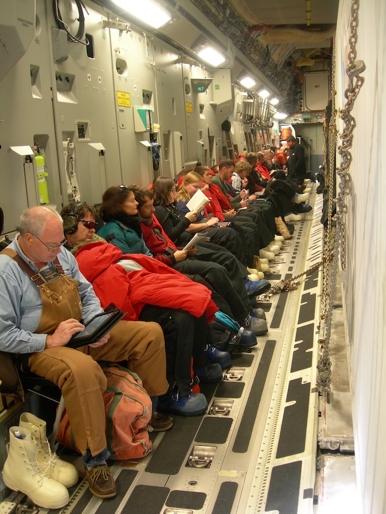 Our military C-17 flight landed on 2.3-meter thick sea ice in McMurdo Sound. McMurdo has three airfields that are used at different times during the austral summer. The sea-ice runway is located a few miles from McMurdo, and it usually operates from October to December, until the sea ice begins to break.
