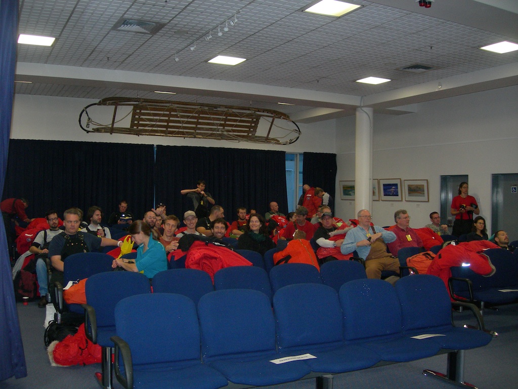 Our shuttles to the airport were waiting for us at 4:30AM on Monday, 21 November, as we were scheduled to report at the Clothing Distribution Center at 5:00AM. As we arrived we were instructed to change into our ECW (Extreme Cold Weather) clothes. So we found ourselves hanging out in Christchurch at 65 degrees Fahrenheit, dressed in clothing designed for -20 degrees. It was a bit toasty.