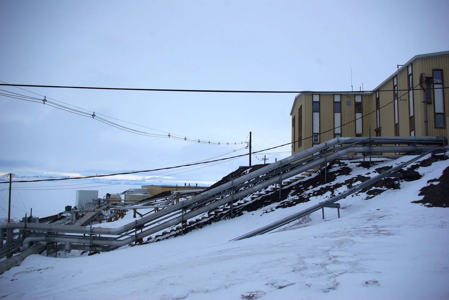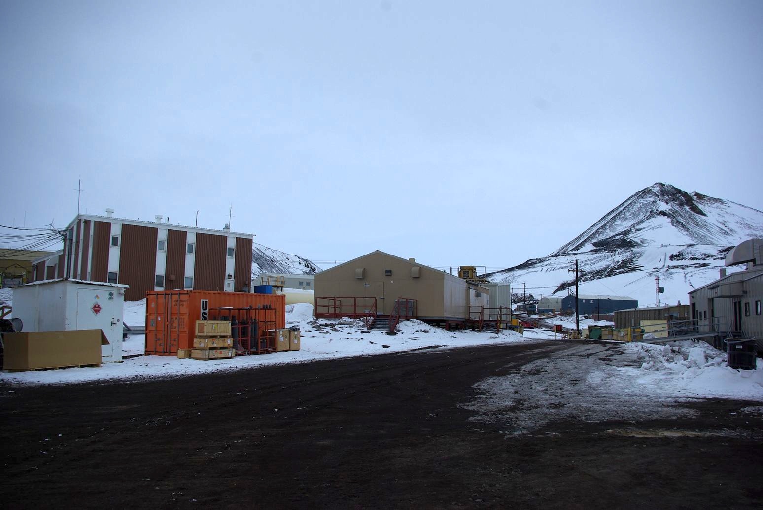 After a warm welcome and a short briefing at McMurdo, we got our room keys and headed toward the dormitories. That gave us the first opportunity to walk a bit through the station. McMurdo Station (located 77° 51′ S 166° 40′ E) sits on bare volcanic rock on the coast of Hut Point Peninsula, Ross Island. The station was built in 1955; its 85 or so buildings range in size from a small radio shack to large three-story structures. It is the largest Antarctic station and the logistics center for the U.S. Antarctic Program. There are repair facilities, dormitories (for a maximum of 1200+ people), administrative buildings, a firehouse, a power plant, a water distillation plant, a wharf, stores, clubs, warehouses, and a science and engineering center (where we will spend some time before heading to Byrd, hopefully next week). All the structures are linked by above-ground water, sewer, telephone, and power lines.